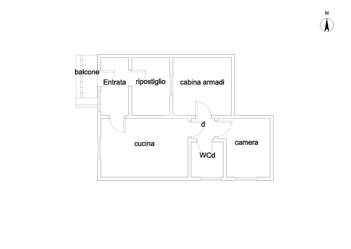 L'ingresso conduce direttamente alla spaziosa cucina soggiorno, proseguendo troviamo una camera da letto, una ampia cabina armadi attualmente adibita a camera, wc doccia e un comodo e utile ripostiglio.